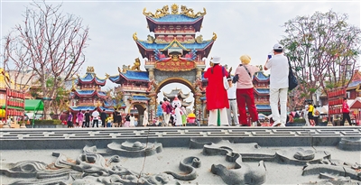 海花岛童世界节日氛围浓厚,繁密搭客前来游玩。海南日报全媒体记者 陈元才 摄