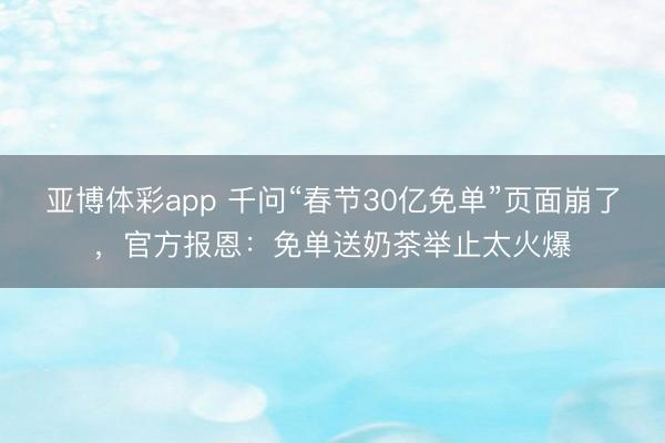 亚博体彩app 千问“春节30亿免单”页面崩了,官方报恩:免单送奶茶举止太火爆
