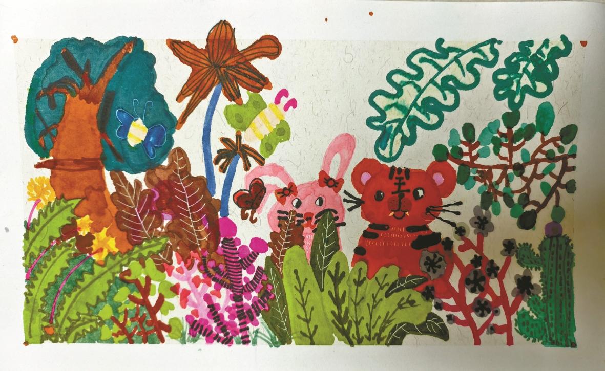 老虎与兔子 鄞州区钟公庙本质小学102班 沈懒散(证号J26103518)指点真挚:胡佳琦