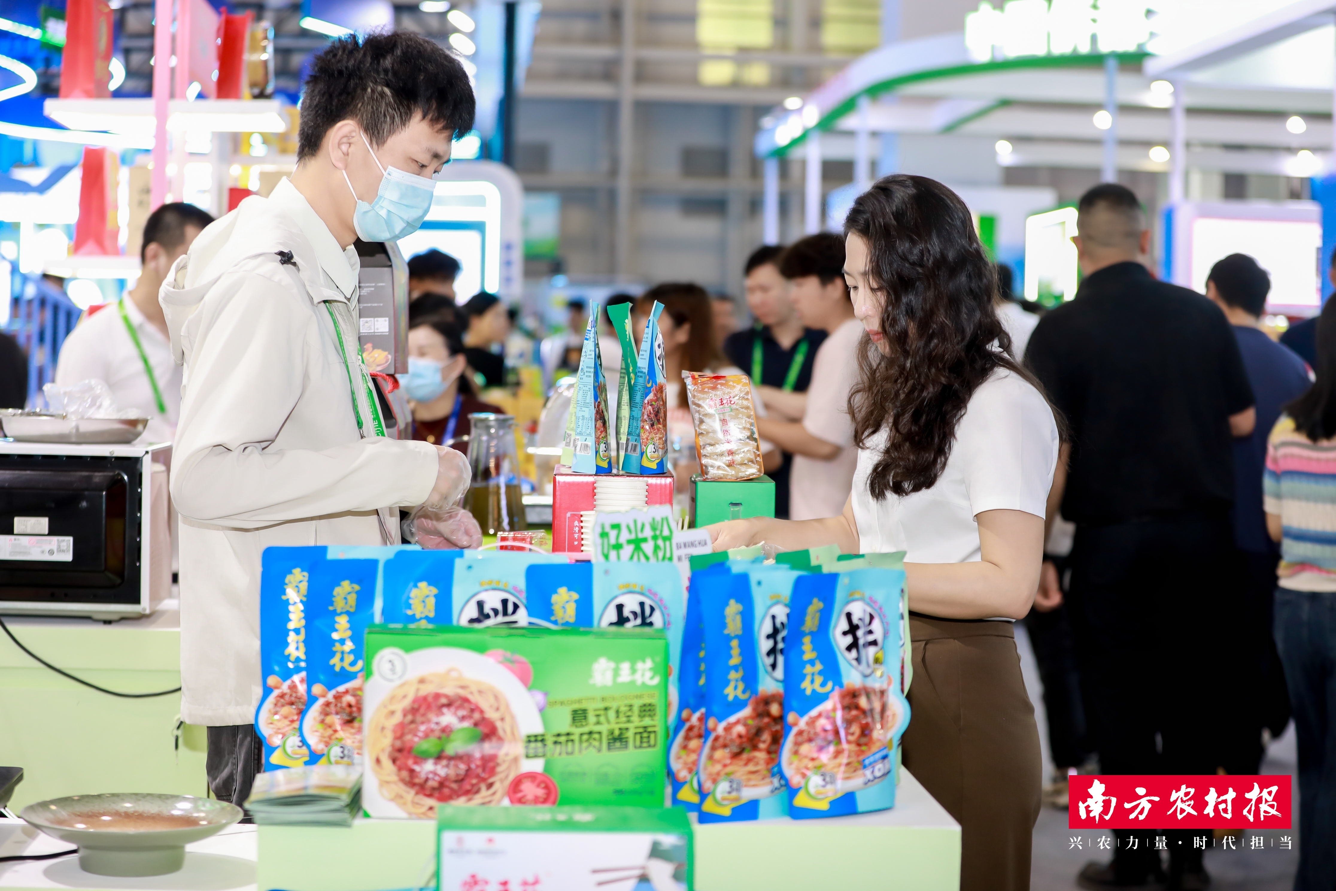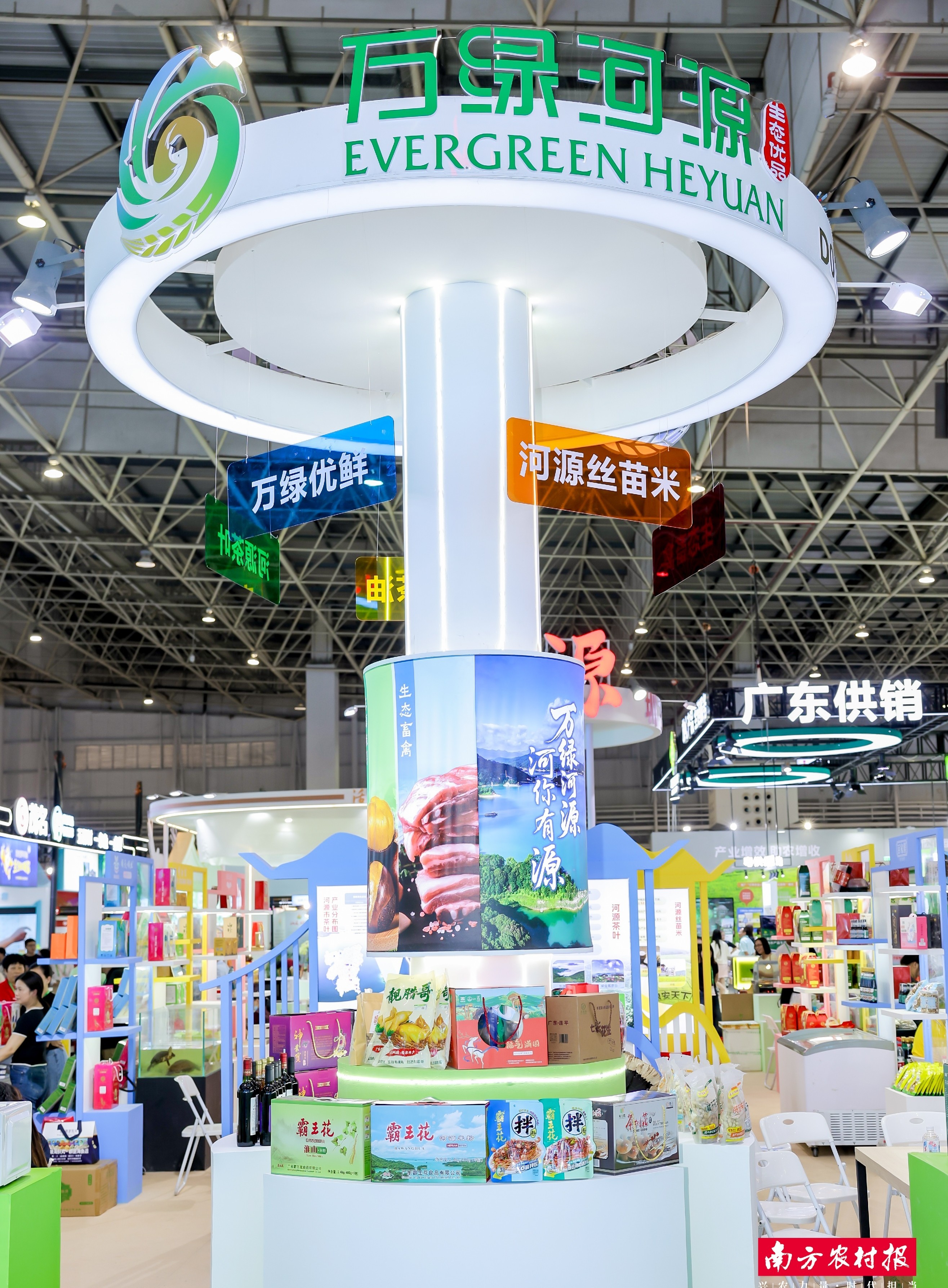 走进本次农博会河源展馆,主视觉“万绿河源”与万绿湖碧波相映,河源米粉、紫金蝉茶、龙川山茶油、河源丝苗米、东源板栗、生态畜禽等拳头居品生香吸睛,传递着“好山好水出好品”的品性内涵。