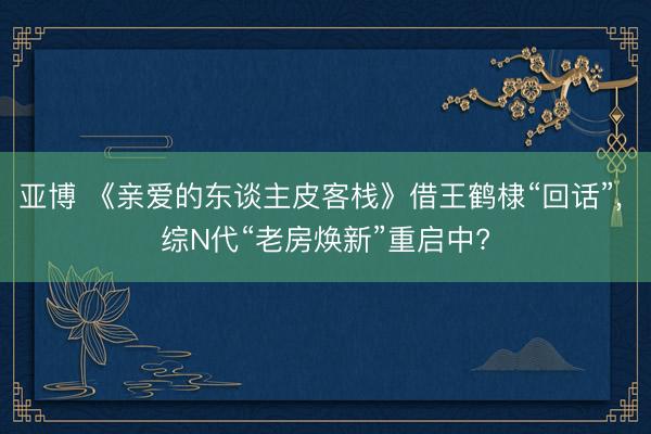 亚博 《亲爱的东谈主皮客栈》借王鹤棣“回话”, 综N代“老房焕新”重启中?