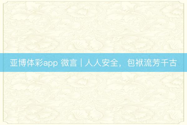 亚博体彩app 微言 | 人人安全,包袱流芳千古