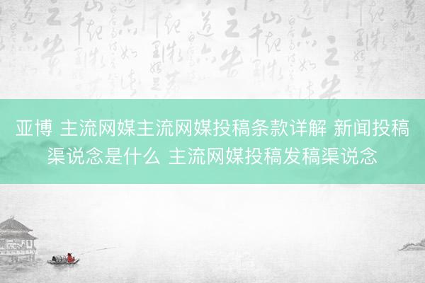 亚博 主流网媒主流网媒投稿条款详解 新闻投稿渠说念是什么 主流网媒投稿发稿渠说念