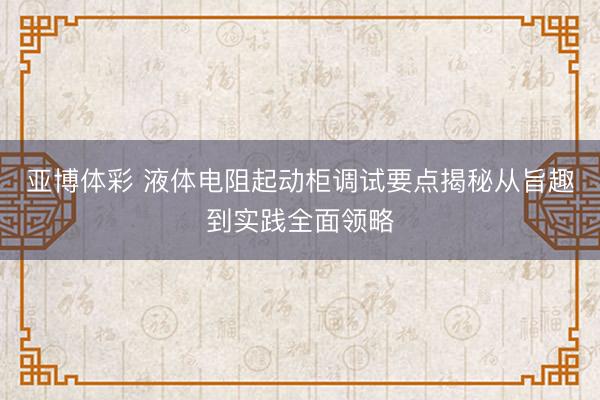 亚博体彩 液体电阻起动柜调试要点揭秘从旨趣到实践全面领略