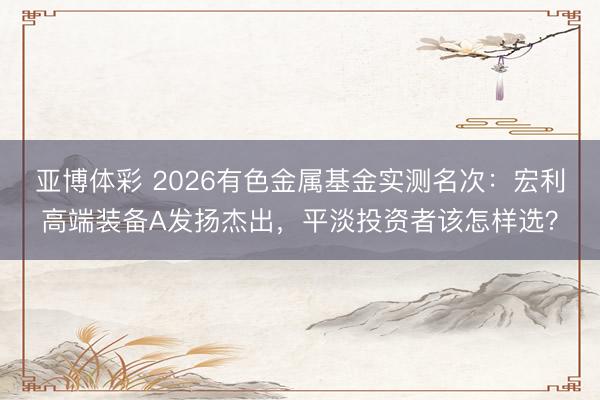 亚博体彩 2026有色金属基金实测名次:宏利高端装备A发扬杰出,平淡投资者该怎样选?