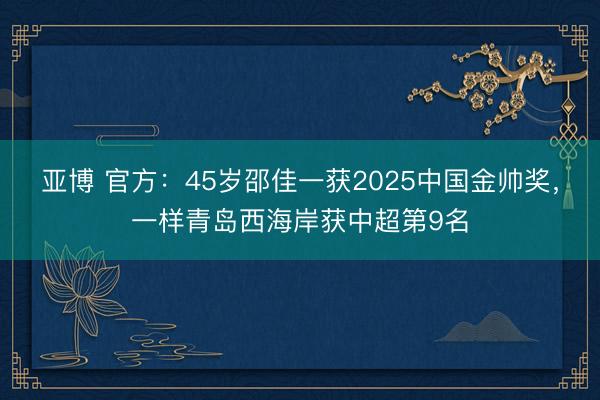 亚博 官方:45岁邵佳一获2025中国金帅奖,一样青岛西海岸获中超第9名