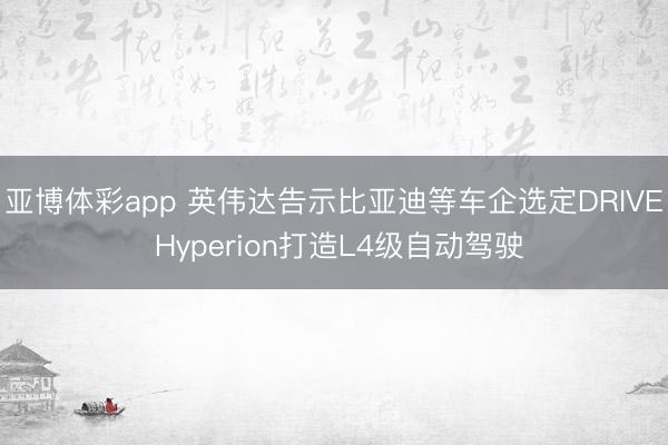 亚博体彩app 英伟达告示比亚迪等车企选定DRIVE Hyperion打造L4级自动驾驶