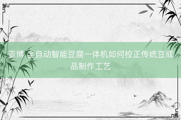 亚博 全自动智能豆腐一体机如何校正传统豆成品制作工艺