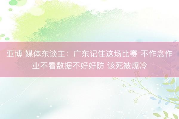 亚博 媒体东谈主:广东记住这场比赛 不作念作业不看数据不好好防 该死被爆冷