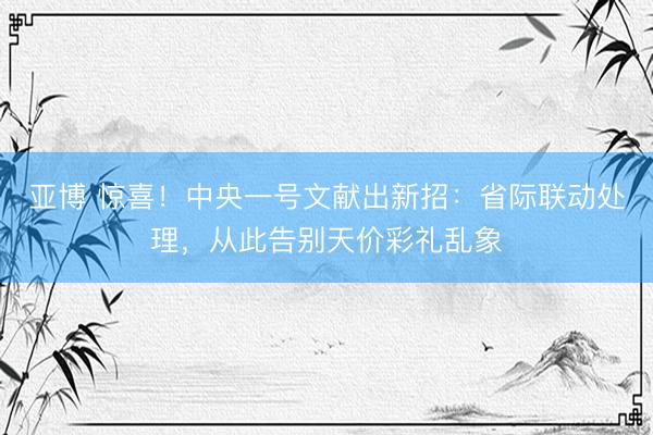 亚博 惊喜!中央一号文献出新招:省际联动处理,从此告别天价彩礼乱象