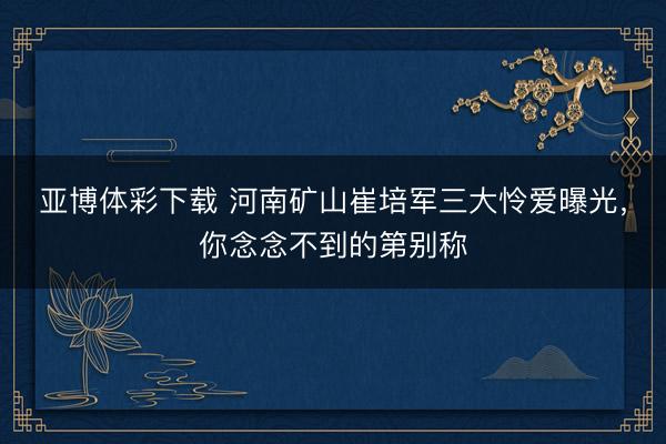 亚博体彩下载 河南矿山崔培军三大怜爱曝光,你念念不到的第别称