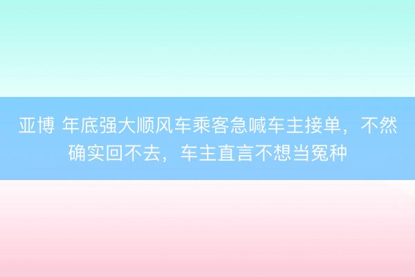 亚博 年底强大顺风车乘客急喊车主接单,不然确实回不去,车主直言不想当冤种