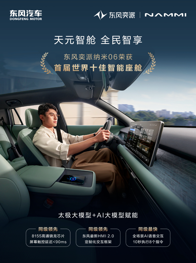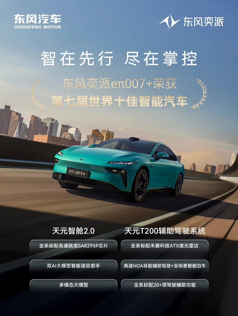 东风奕派eπ007+、纳米06鉴识荣获“全国十佳智能汽车”“全国十佳汽车智能座舱”奖项