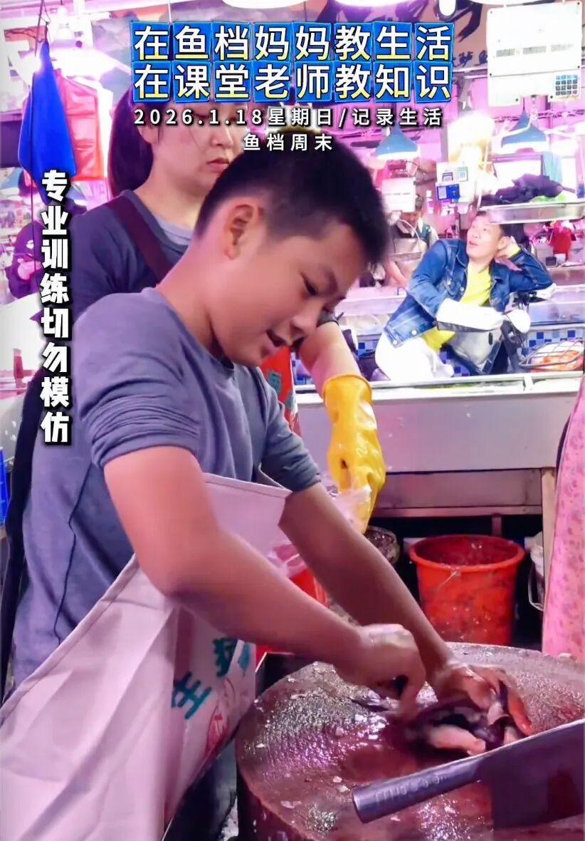 佛山学生春假在鱼档帮父母忙,杀鱼刮鳞行为娴熟麻利