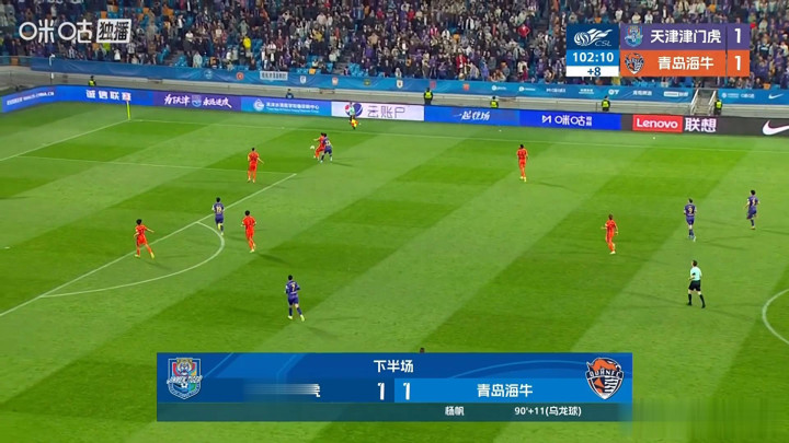 亚博 天津津门虎1-1憾平青岛海牛, 杨帆补时自摆乌龙无缘首胜