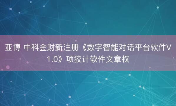 亚博 中科金财新注册《数字智能对话平台软件V1.0》项狡计软件文章权
